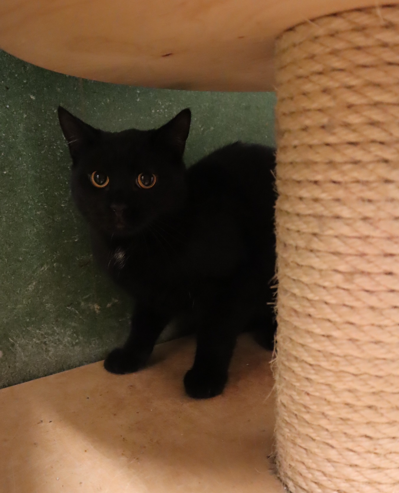Dior to przepiękny kocur o lśniącej, czarnej sierści, który obecnie zmaga się z ogromnym lękiem. Schroniskowy zgiełk zupełnie go przytłoczył – kocur jest mocno wycofany, boi się obcych i najbezpieczniej czuje się w ukryciu. Nasi wolontariusze i pracownicy codziennie pracują nad jego zaufaniem, jednak to domowy spokój jest mu najbardziej potrzebny.